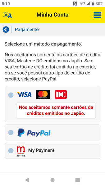 Se você não tiver um cartão habilitado para 3D Secure, não poderá concluir o pagamento em nosso site, portanto, recomendamos que você registre as informações necessárias (senha) no site do emissor do seu cartão com antecedência. - Por questões de segurança, recargas com cartão de crédito e PayPal têm limite diário de ¥10,000 e semanal de ¥20,000. É possível aumentar o limite após a verificação dos seus dados. Entre em contato conosco para solicitar o aumento.