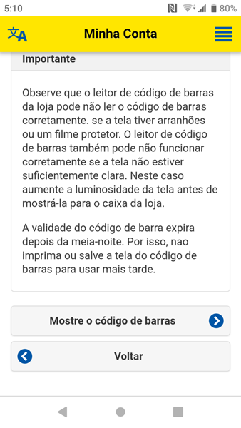 - A opção recarga automática será desativada se a validade do cartão de crédito estiver expirado ou se atingir o limite de crédito.